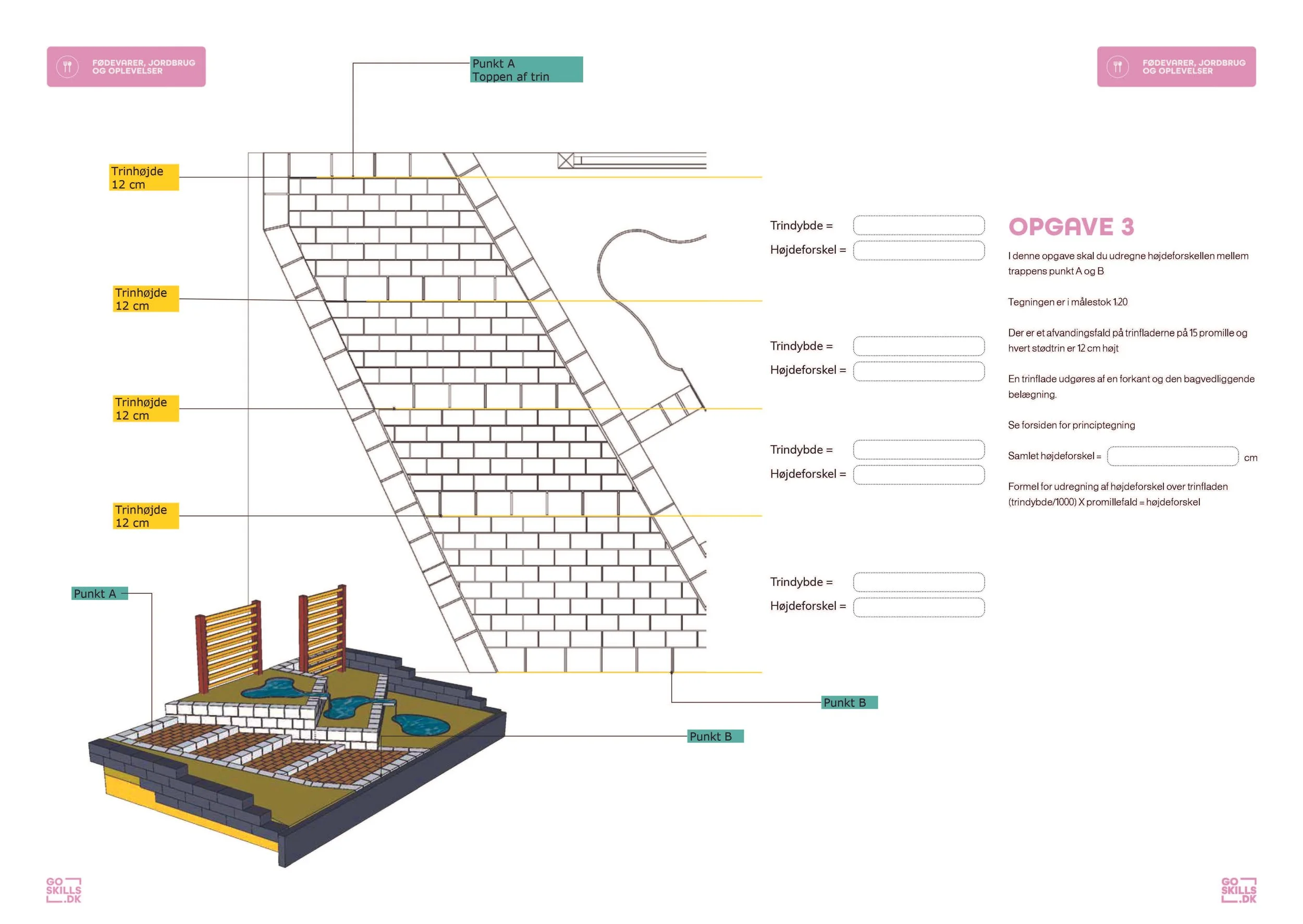 Eleverne løser opgaver med målestoksforhold, de beregner arealer og materialebehov, højdeforskelle og promillefald.